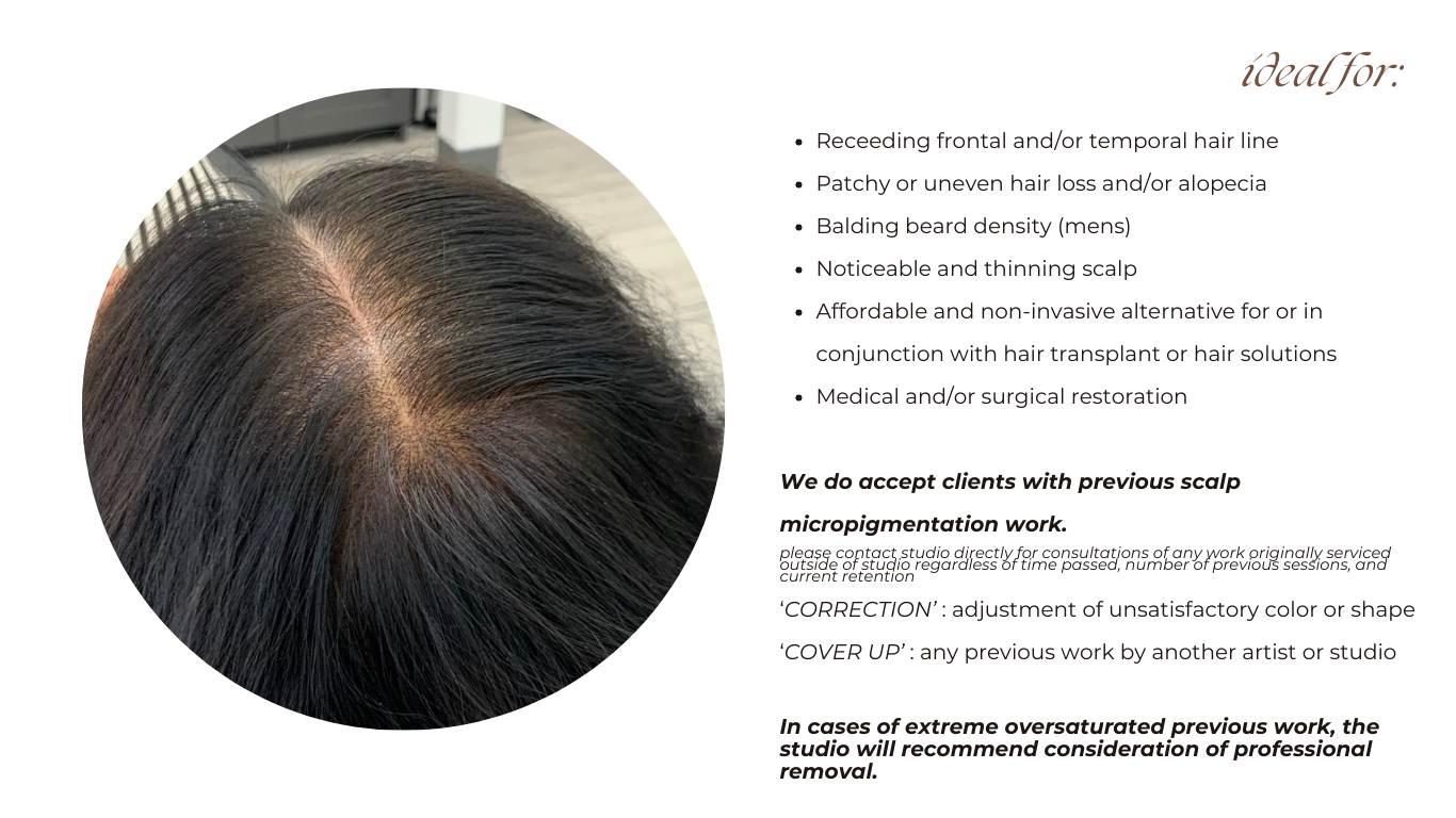 This service is done by intentional deposition of specially formulated pigmentation to realistically mimic individual hair-like follicles for the illusion of fuller hair and caters to both men and women.